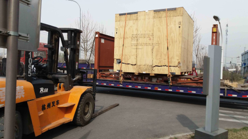 北京設備裝卸搬運案例之40尺集裝箱吊裝裝卸車進場