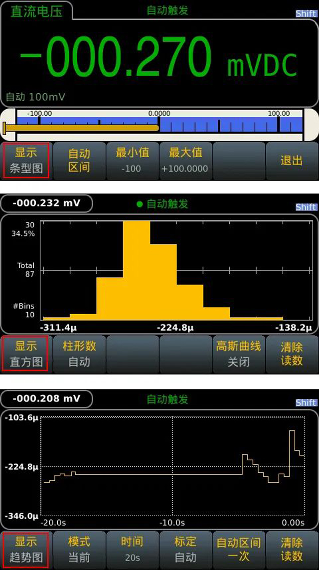 · 直方圖、條形圖、趨勢圖顯示