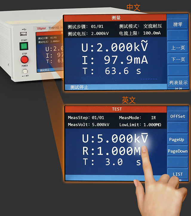 TH9110/TH9110A系列除了基本的交流、直流、絕緣電阻測(cè)試外,還增加了崩潰電壓測(cè)試功能,可分析產(chǎn)品的擊穿點(diǎn)電壓,滿足特定客戶對(duì)產(chǎn)品高壓可靠性檢測(cè)的要求;同時(shí)具有開短路檢測(cè)功能,解決了用戶在測(cè)試安規(guī)產(chǎn)品時(shí)的可靠性和準(zhǔn)確性問題,輸出時(shí)同步進(jìn)行接觸檢查,避免漏檢,提升測(cè)試可靠度與效率。