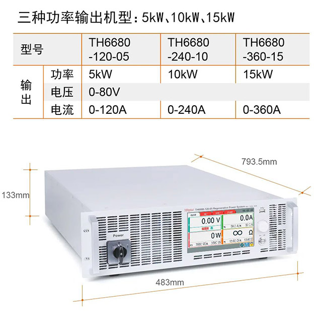 TH6600系列雙向回饋式大功率直流電源既可以作為源輸出(正向)電流,又可以作為載吸收(反向)電流,且無論在電源模式還是負(fù)載模式,都具有CV、CC、CR、CP操作,適用于電動汽車用電機、控制器、電動汽車動力總成系統(tǒng)等領(lǐng)域產(chǎn)品測試。