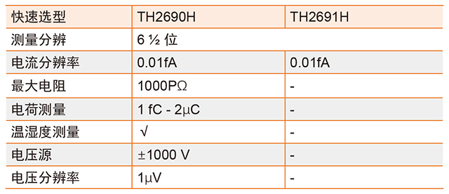 首先,我們改進(jìn)了電流測(cè)量的分辨率,在TH2690的基礎(chǔ)上,我們將TH2690H、TH2691H的電流向下升級(jí)了十倍,從0.1fA