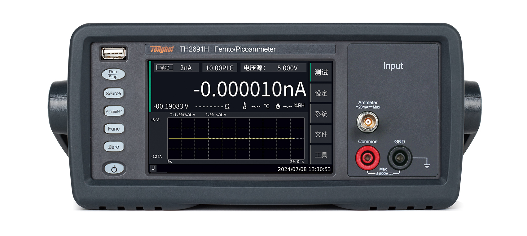 ? 電流量程:20pA-20mA,電流分辨率達0.1fA