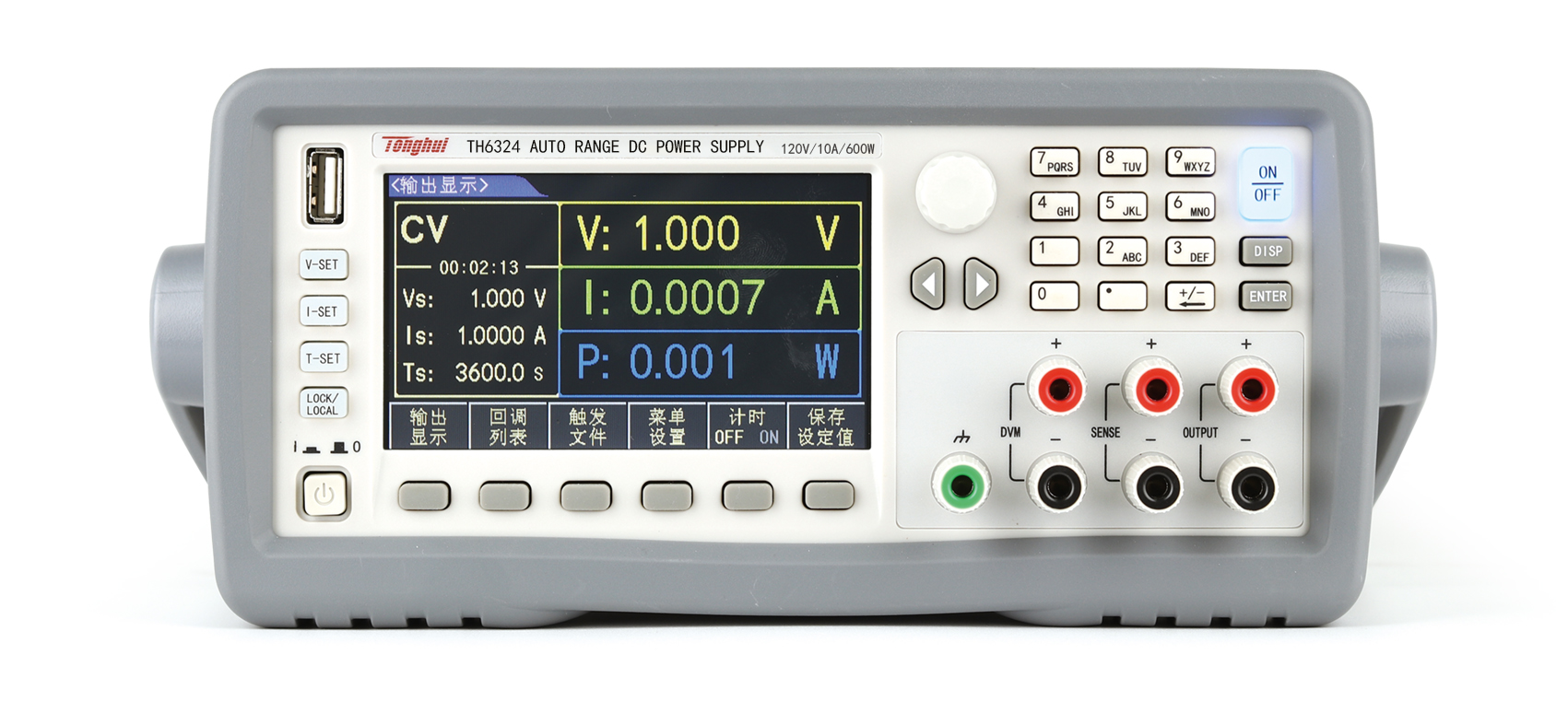 ■ 旋鈕和數(shù)字鍵盤設(shè)置電壓、電流、輸出時間