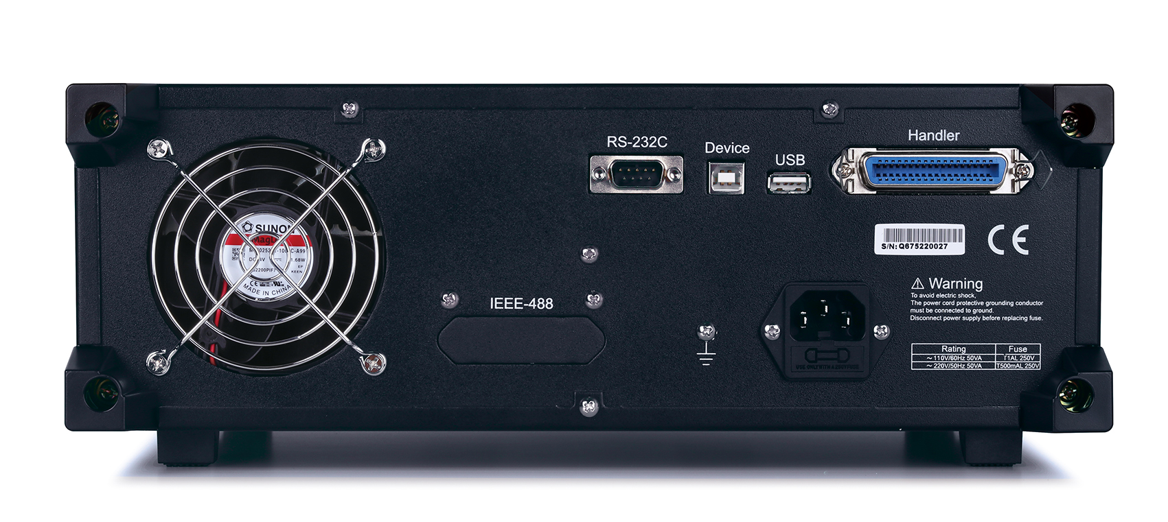 新一代儀器除了和舊型號一樣提供了RS232C、HANDLER、GPIB(選件)接口之外,進一步提供了USB HOST、USB DEVICE接口,在儀器集成于元件自動分選系統(tǒng)、與計算機通訊及測試過程數(shù)據(jù)紀錄提供了更多選擇。