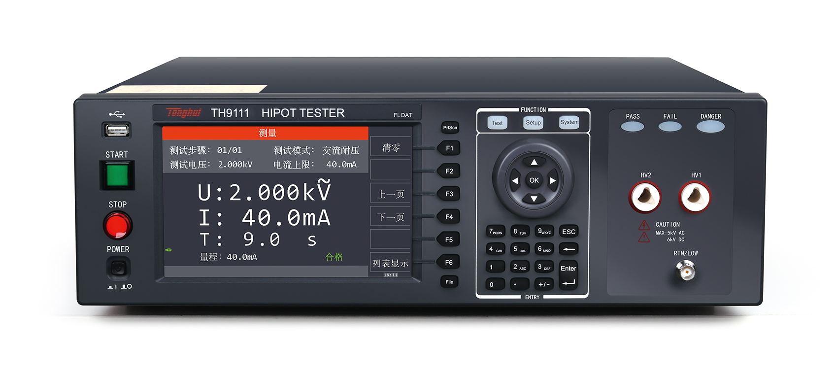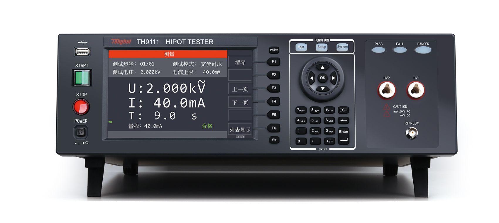 TH9110/TH9110A交直流耐壓/絕緣電阻測(cè)試儀是同惠多年電氣安規(guī)測(cè)試儀器設(shè)計(jì)的經(jīng)驗(yàn),設(shè)計(jì)的具有500VA大功率,最大輸出交流5kV/100mA,符合大功率耐壓測(cè)試需求,以及符合EN50191的設(shè)備要求。