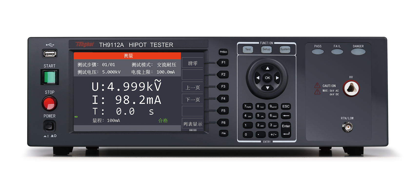 TH9110/TH9110A交直流耐壓/絕緣電阻測試儀是同惠多年電氣安規(guī)測試儀器設計的經(jīng)驗,設計的具有500VA大功率,最大輸出交流5kV/100mA,符合大功率耐壓測試需求,以及符合EN50191的設備要求。