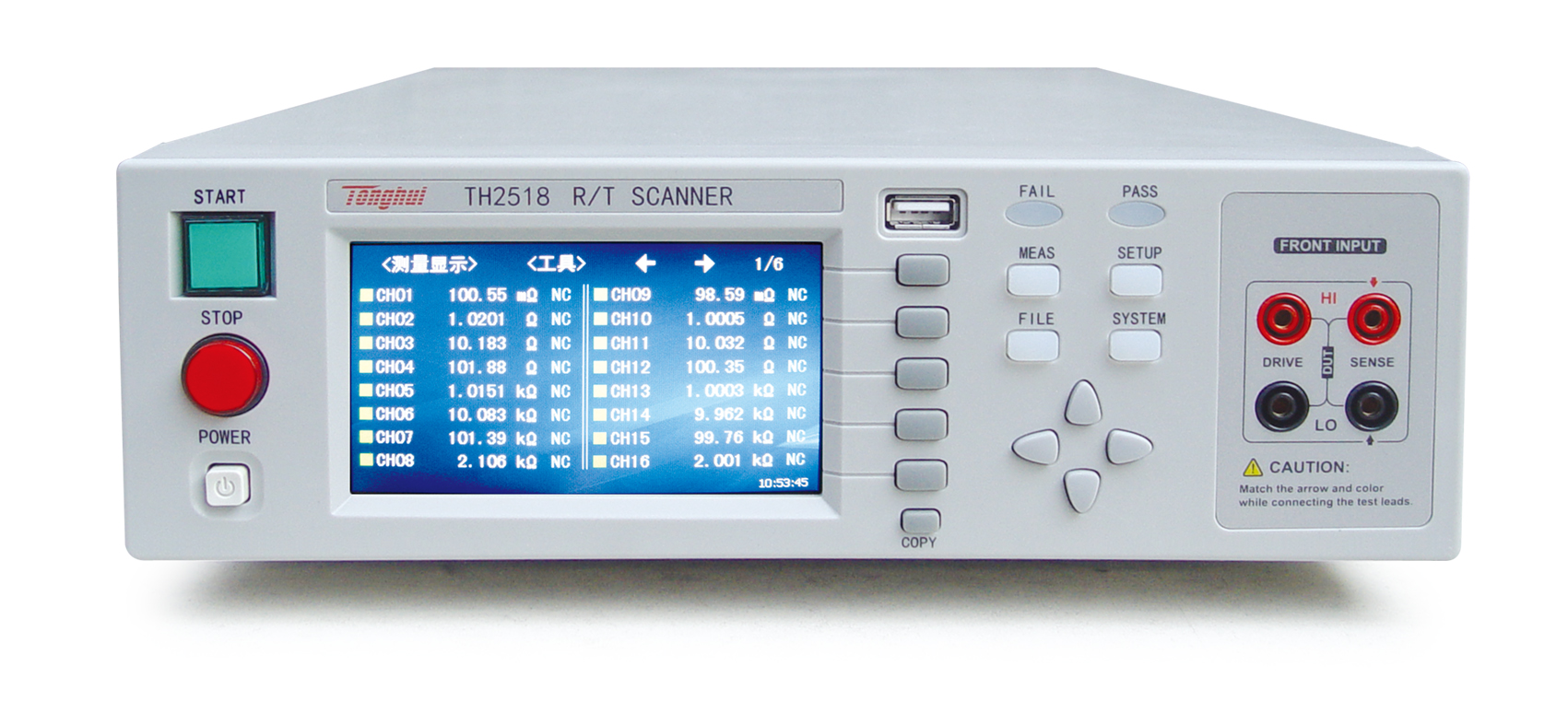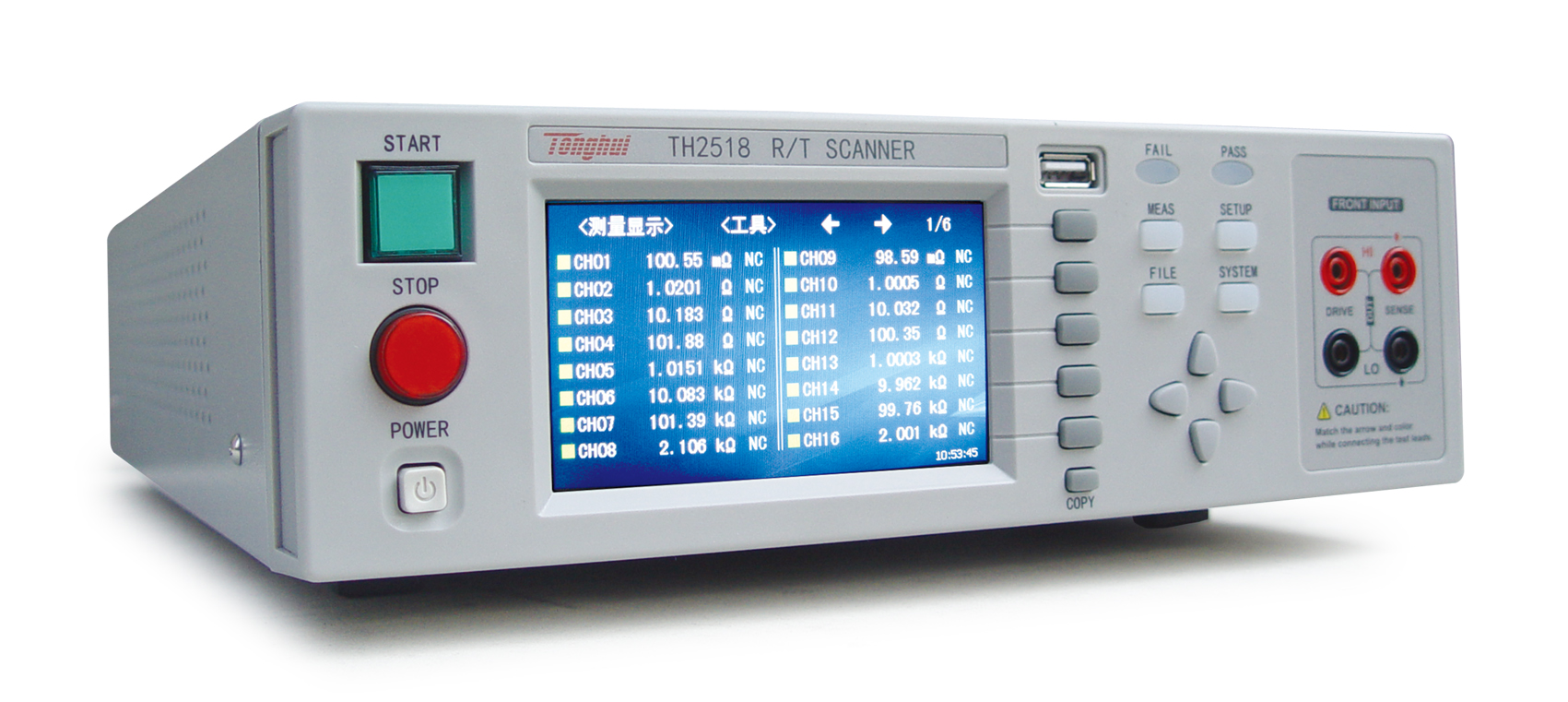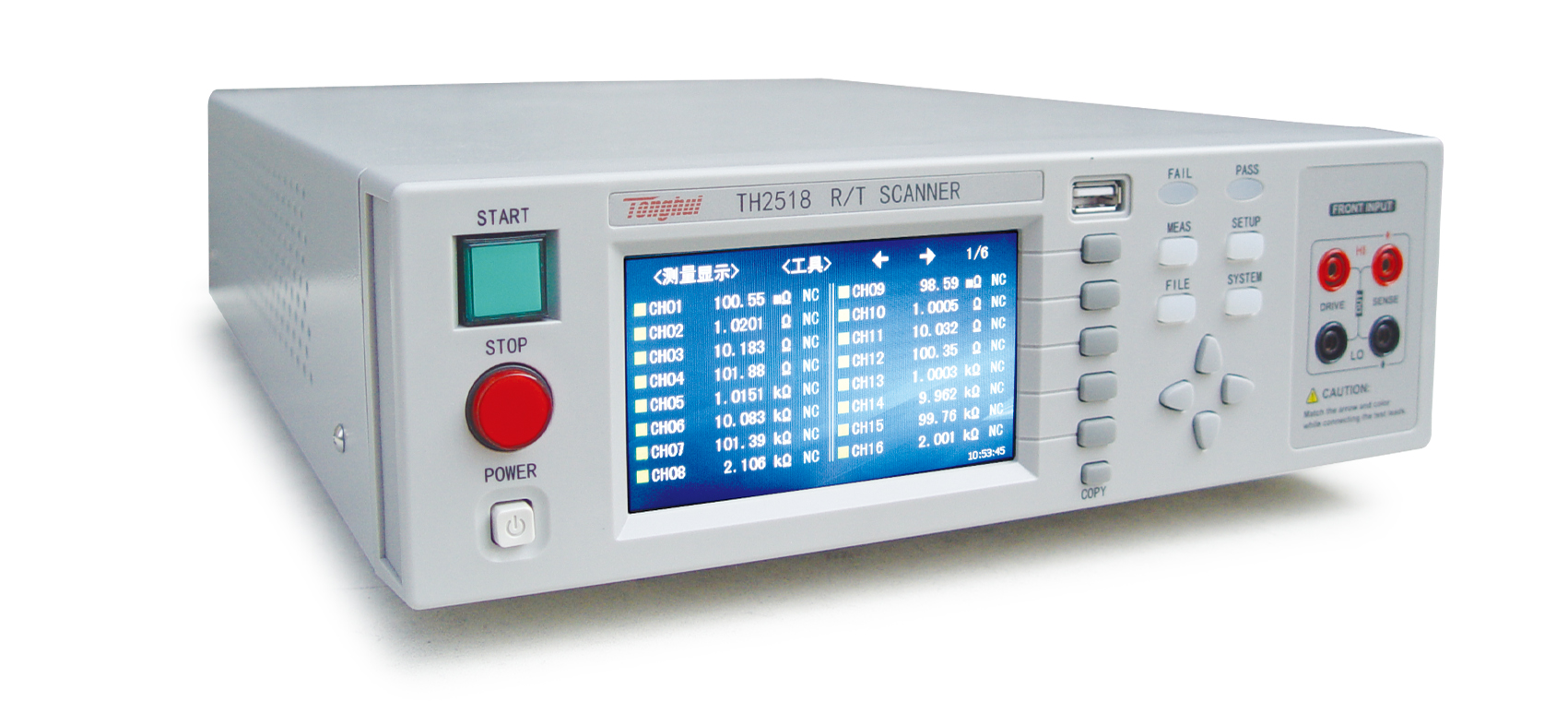 同惠TH2518系列電阻/溫度掃描儀模擬測試掃描單元采用同步插卡式的設計理念,可支持的插卡板測試單元可達6個,且在插卡板之間實現(xiàn)同步測量,大大提高掃描測量速度。每塊測量板內(nèi)包含16個測試端,測試端的組合支持用戶可自由編程,最高可配置高達90路電阻/溫度掃描測量通道,每通道測量可單獨設計分選比較邊界以及輸出比較分選信號。溫度測量的采樣方式可配置為PT500鉑電阻、PT100鉑電阻、模擬電壓輸入三種方式以適用不同的應用場合。0.05%的最高電阻精度,在200mΩ量程下,電阻分辨率更是達到了10uΩ的水準,測試掃描范圍從10uΩ到200kΩ。儀器的溫度補償和溫度轉換功能使產(chǎn)品的測試免除環(huán)境溫度的影響,可輸出整機級、板級以及各通道的比較分選結果,使您的測試和數(shù)據(jù)分析處理、產(chǎn)品的分揀工作更加輕松。標配的RS232、USB HOST、USB Device和HANDLER接口既方便您測量數(shù)據(jù)的快速保存,又方便您遠程的掌控儀器。帶觸摸功能的24位色、分辨率為480×272的彩色液晶屏,給您的測量操作帶來不一樣的感覺!