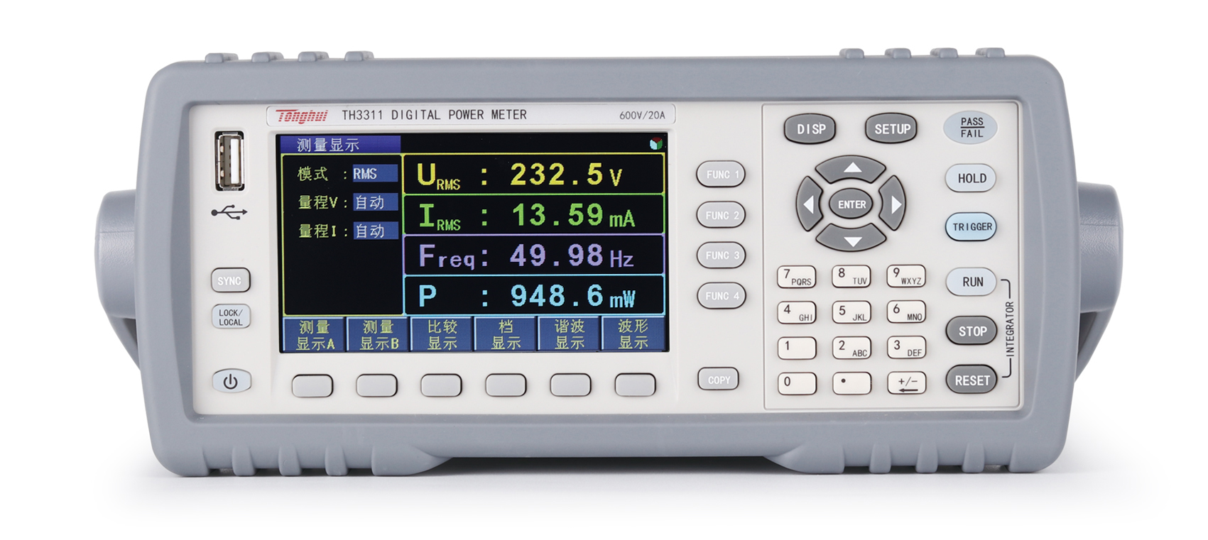 TH3300系列數(shù)字功率計(jì)采用了小機(jī)箱設(shè)計(jì),便于機(jī)架安裝;配備4.3寸液晶屏顯示,測試功能與測量參數(shù)更為豐富,并提供兩種顯示風(fēng)格界面:數(shù)碼管的四窗口顯示;全參數(shù)全屏顯示。
