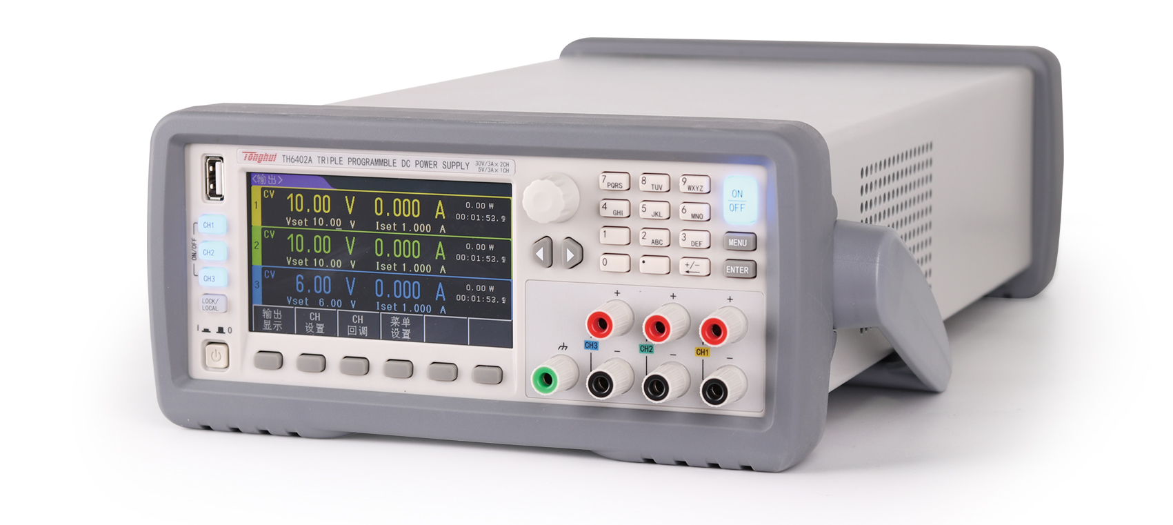 TH6400系列多路輸出可編程直流電源涵蓋了5個型號(單個通道功率范圍5W-180W),其中TH6402B為4通道輸出,其余型號為3通道輸出。全系列電源具備通道間串、并聯(lián)以及同步輸出功能,并且所有通道的輸出參數(shù)同屏顯示,使用起來更加方便、直觀。
