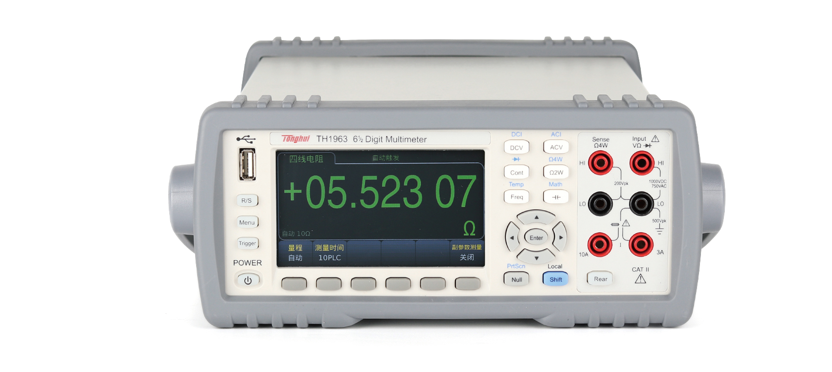 TH1963 六位半高精度臺式數(shù)字多用表測試速度高達1000 次/秒,具備0.0035%的直流電壓基本精度以及 0.0100%的基本電阻精度等一系列優(yōu)良的性能,可以簡便地、更快地進行測試設置,一目了然地監(jiān)測和顯示數(shù)據(jù)。